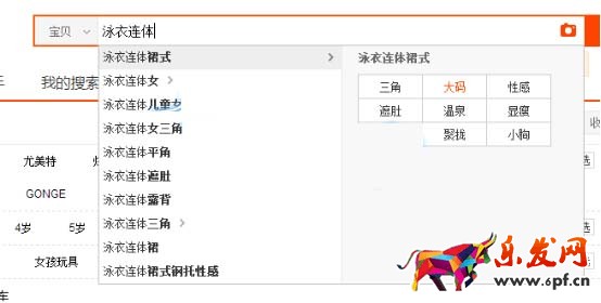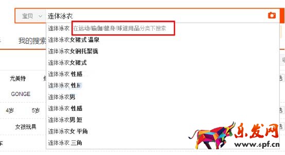 如在淘寶搜索“連體泳衣”和“泳衣連體”這兩個關鍵詞,連體泳衣搜索框下邊會出現在某類目下搜索,而泳衣連體卻沒有,說明連體泳衣該關鍵詞投放在正確相關類目下,泳衣連體比較不符合買家搜索習慣,說明連體泳衣該關鍵詞更好。