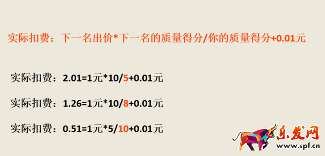 實際扣費=2.01=1元(出價)*10(下一名的質量得分)/5(你的質量得分)+0.01元