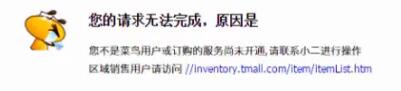 6、倉儲管理:點擊進去,會出現如下所示頁面,這是什么原因呢?這是因為只有你進行了對服務商的開通或者訂購了菜鳥用戶,才能夠進行倉儲管理。