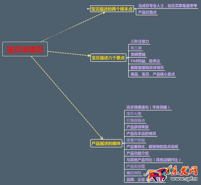 那么下面就得開始優化你的寶貝詳情頁了哈--寶貝詳情頁思維導圖: