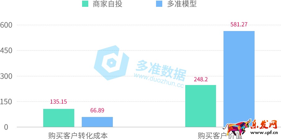 相比商家自投,點(diǎn)擊單價差不多,我們投放的點(diǎn)擊率提高了29%,ROI提高了237%;同時客戶轉(zhuǎn)化成本降低了49%,單個客戶價值卻高出了161%。