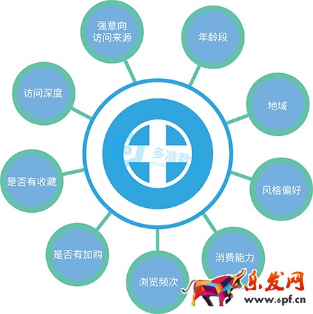 我們從三個維度分析訪客數(shù)據(jù),包括流量屬性、客戶屬性和客戶的店鋪行為。以某金冠店鋪為例,對訪客進(jìn)行下面9個屬性的細(xì)分: