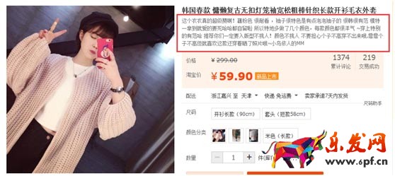 但是,在這里這些我們都不考慮,我們只考慮頁面停留時間的影響。四張圖片,實際上給我們的感覺是不一樣的:第一張圖片,寫的一堆東西,我相信大多數人可能會有一樣的感覺,不想看,這樣就是浪費了時間,沒有任何效果;第二張圖片,也寫了一堆東西,但是我們注意到了三個關鍵詞,所以停留的時間長了一些。“新品熱賣”、“女神冬季必備”、“現在拍下申通包郵”,因為這三個用了一個特殊的符號標注了一下;第三張圖,我相信就會有一部分人讀完了,尤其是小女生們,因為是很口語化的語言,跟你“面對面”去介紹這款衣服,頁面的停留時間會更進一步的延長;第四張圖片呢?效果是不是更好?