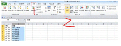 2、選擇有價格的一個單元格,右鍵店家創建組
