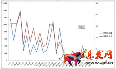 藍色代表銷量,紅色代表的是價格區間的賣家數。