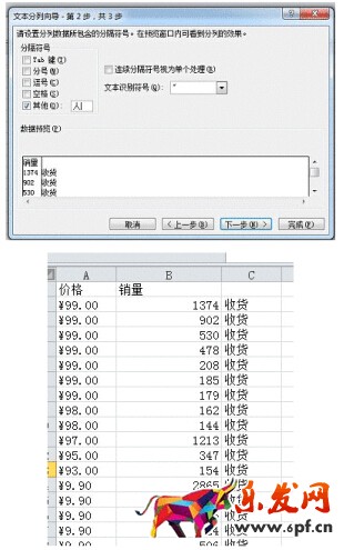 處理數據的核心就是找規律,這里我們可以看到,價格跟銷量大部分是連在一起的,但是部分中間有運費,所以需要刪除有運費的行,具體操作如下: