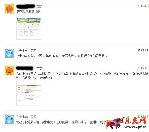 對方一看,要退貨才能退款啊,沒貨可退怎么辦?那就換個理由,你不是說你是進口的么,投訴你假冒品牌,然后,我們提交了國外進貨憑證,拒絕退款:
