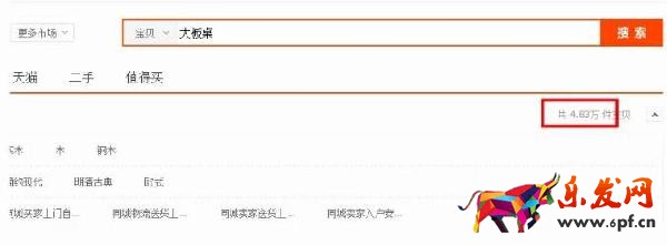 相對淘寶整體搜索而言,這些數(shù)量是比較少的,以下圖所示為例,在搜索框中輸入“大板桌”,可以看到還不到五萬個寶貝,所以冷門類目產(chǎn)品具有競爭小、數(shù)量少的特點。