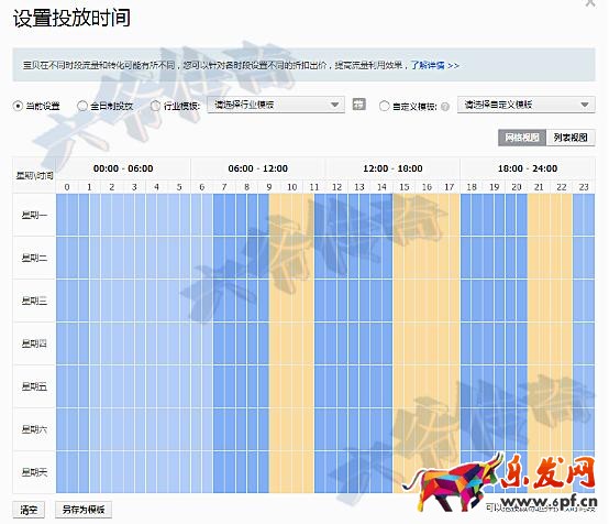 不同類目投放時間設定也是有差異的,根據自己類目的流量情況,在流量高的時間段設置高比例投放比例,讓關鍵詞有絕對的優勢排名靠前理智的去競爭流量。大多數類目在晚上10點左右是流量高峰期,此時可把折扣設置為120%左右,其他時間段早上10:00-11:00設置120%左右,下午3:00-5:00設置120%。其余時間比如凌晨流量很少,可以設置30%小幅度投放。投放時間根據類目不同也是有區別的,根據自身店鋪數據進行分析調整。