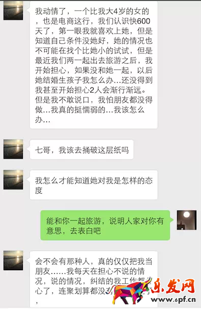 “我92年的,書沒讀多少,初中畢業就讀不下去了。我實在不適合讀書,就像現在做電商一樣,老板讓我寫計劃,我特別頭大,我一晚上也寫不了幾個字,但我能講,就是不會寫。我特別佩服七哥你啊,能寫那么多文章。”
