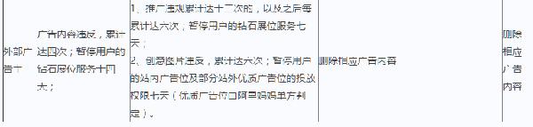 三十 用戶如發生下述違規情形,阿里媽媽除有權刪除相應的廣告內容并暫停提供鉆石展位廣告服務: