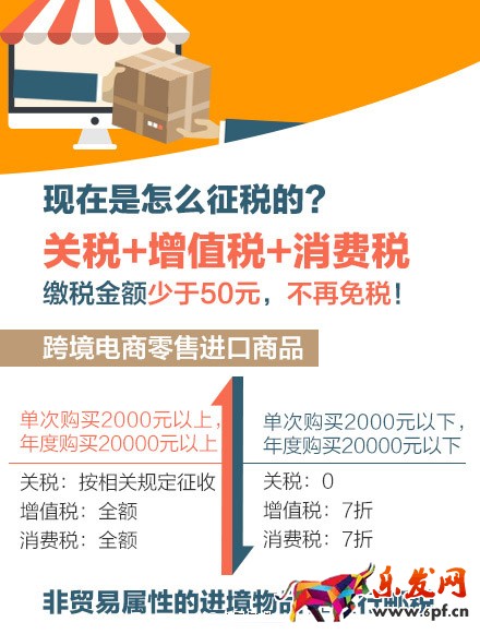 新政策有哪些?①跨境電商零售進口商品,單次交易限值為2000元,個人年度限值20000元。②在限值以內,關稅稅率暫設為0%。③以前行郵稅繳稅金額少于50元,也就是貨值500元以內,免稅。如今不再免稅。④海淘食品、保健品、奶粉、紙尿褲等的成本會上升。