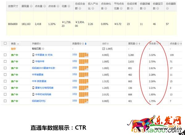 直通車數(shù)據(jù)展示:CTR(點擊率)