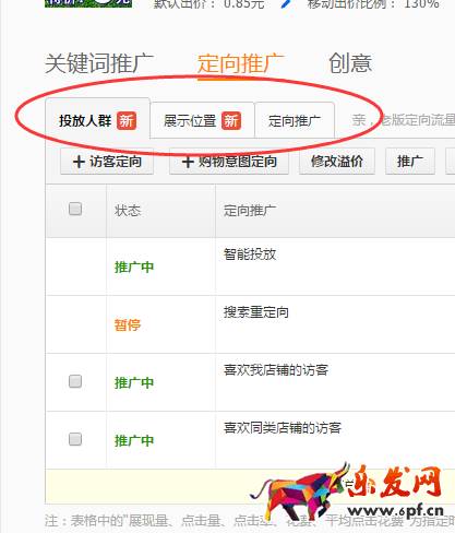 另外相對來講一些掌柜對于寶貝定向推廣這個字眼并不陌生,因為在直通車寶貝計劃頁面有定向推廣的專欄