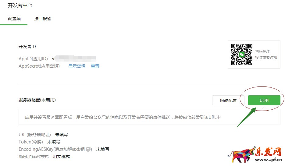 2.然后,點(diǎn)擊進(jìn)入開發(fā)模式,在頁面中下部填入U(xiǎn)RL 和 token ,完成配置。關(guān)于獲取方式,可以在第三方微信平臺(tái)免費(fèi)獲得,為避免廣告,請自行查找。