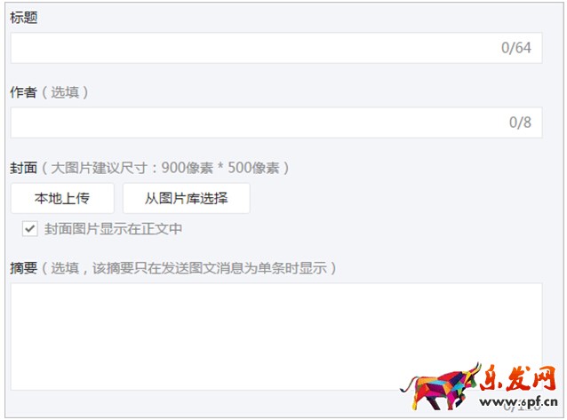 在編輯單圖文消息時,可以選填摘要內容,不能超過120個漢字或字符;填寫摘要后在粉絲收到的圖文消息封面會顯示摘要內容;若未填寫摘要,在粉絲收到的圖文消息封面則展示部分正文內容。