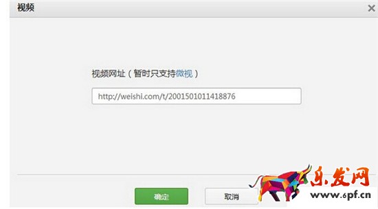 4. 首先從你自己或者別人的微視當(dāng)中找到視頻鏈接,填寫到視頻網(wǎng)址當(dāng)中: