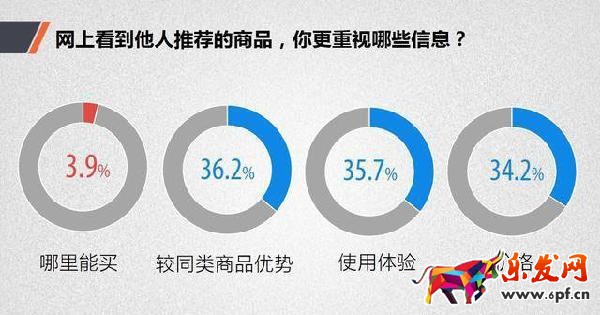 如果向用戶推薦好用的商品 , 那么你最不需要告訴他們的可能就是 " 哪里去買 "。這在用戶的關注中排名最低 , 占比僅有 3.9%。