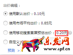 第三:點(diǎn)擊出價降到最低,低到卡地區(qū)卡價格能夠展現(xiàn)即可,最好是只卡一個屬性能夠展現(xiàn)。這樣一個點(diǎn)擊單價一般都是非常低的,有利于降低我們的優(yōu)化成本。