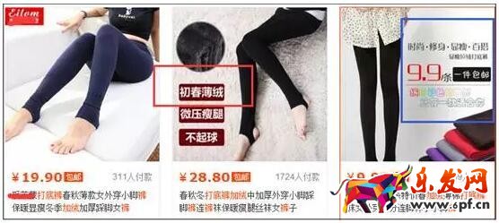 很簡單,這也是非常重要的一個問題:賣點提煉,消費者能記住的實際上往往只有一個。這個首圖上至少兩個賣點是賣家想突出的:一個是加肥加大、一個是加絨加厚。但是你有沒有想過,很胖的妹子非常的想顯身材呢,加絨加厚好?本來腿就粗!所以,你到底想圍繞哪個核心,一定要明確。