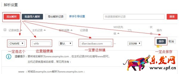 主機記錄:隨便填,例如 whb (但不要與你的其他二級域名重復);