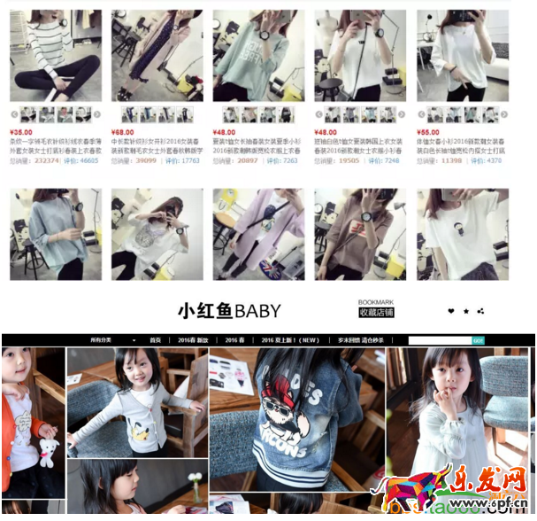 上面這兩個女裝、女童店鋪的圖片點擊率都是非常高的,女裝的直通車無線點擊率能達到5%。而這兩家店圖片看起來就是非常符合主圖通透、衣服與背景對比鮮明這兩個特點。