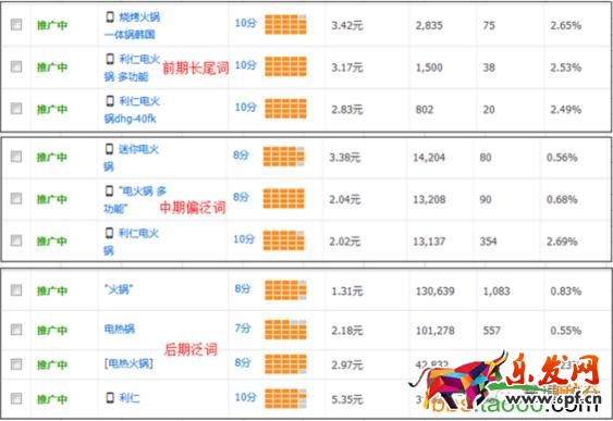(1)添加偏泛詞(質量得分較高,出價略低于精準詞20-30%,測試偏泛詞反饋);