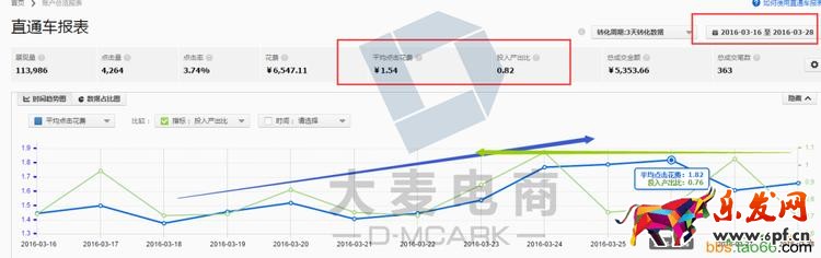 觀察過去3.16日到3.28日的數據,可見PPC去到1.54元,整段時間投產比基本上是低于1。全店的營業額也就2000元左右,花在直通車推廣的成本接近營業額的30%,不言而喻,店鋪確實是一直虧本狀態!