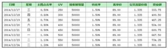 假設我們單品寶貝流量價值趨于穩定=1.335,淘寶給予的展現量穩定,理解搜索主圖點擊率地優化帶來的效益產值,從而對后期運營工作地細化提出數據參考!