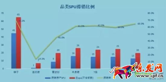 我們在上面發(fā)現(xiàn)了問題庫存,那上面這張圖就可以告訴了我們問題庫存都是壓在哪些地方了,褲子跟半身裙是占據(jù)了最大頭的兩個品類,而第二張圖告訴了我們開發(fā)失敗率是非常高的,因此我們要多分析下這兩個品類的商品開發(fā)情況,產(chǎn)品情況,成本分布,屬性分布,流量分配情況如何(有些時候并非是因為產(chǎn)品問題,而是因為我們開發(fā)過度,運營節(jié)奏跟不上等導(dǎo)致)