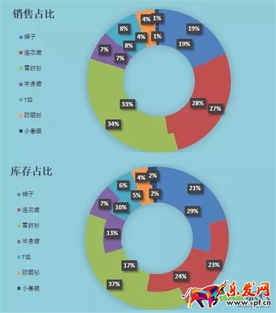 b連衣裙和雪紡衫(配合褲子主類的搭配),是所有品類中,庫銷控制最合理,也是拉低整體庫銷比最重要的地方了。