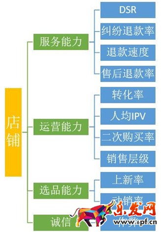 店鋪權(quán)重分為服務(wù)能力、運營能力、選貨能力和誠信。