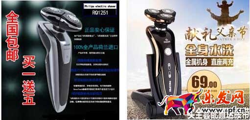 左圖----“螞蟻”般的字誰能告訴我是什么?你是在羅列寶貝買點嗎?這效果往往更會讓人頭疼,還有所謂的“買一送五”只要是經(jīng)常在淘寶購物的,都知道你這送五的含義,無非是一些清洗毛刷、布藝便攜袋,額外內(nèi)置刀頭,然而并沒有什么亂用,這些都是寶貝的一致標準配件,并沒有達到你想要的“巨優(yōu)惠”效果。