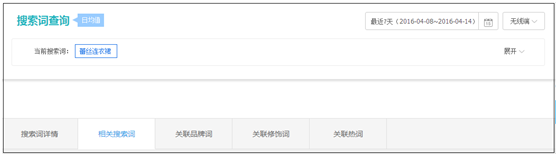 計(jì)劃里面所有的詞全部都是自己手工篩選,不要推薦的詞,選詞的標(biāo)準(zhǔn)其實(shí)很簡(jiǎn)單:在生意參謀——市場(chǎng)行情——搜索詞分析——搜索詞查詢,輸入“蕾絲連衣裙”、“連衣裙蕾絲”等,然后選擇最近7天的數(shù)據(jù),無線端,然后點(diǎn)擊相關(guān)搜索詞: