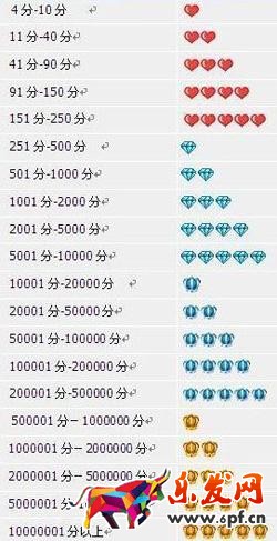 在交易中作為賣家的角色,其信用度分為以下20個級別: