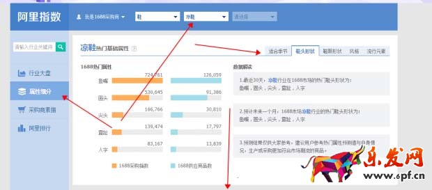 我們從這里來挖掘出要做的產(chǎn)品,好了,還是說說女鞋,畢竟我之前做的女鞋就是這樣挖出來的。先確定要做哪個細分類目,不要去夏天做棉鞋,要順勢而為。首先點行業(yè)大盤,進入頁面,選擇品類,鞋——板鞋,或者其他你想做的,如圖:
