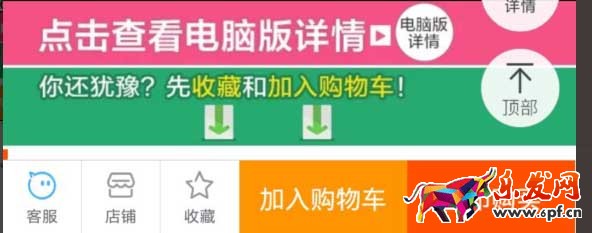 擊查看電腦版詳情,有設置手機詳情的都會有右邊這個標準的,這這里如果還沒打算購買的買家可以引導進入電腦版詳情了解更多。還有增加下面“你還猶豫?先收藏和加入購物車!”并設計下面箭頭標準,具體位置美工設計好先用手機看下,調整位置!這也是引導一些還沒決定要購買的人群先加購收藏!