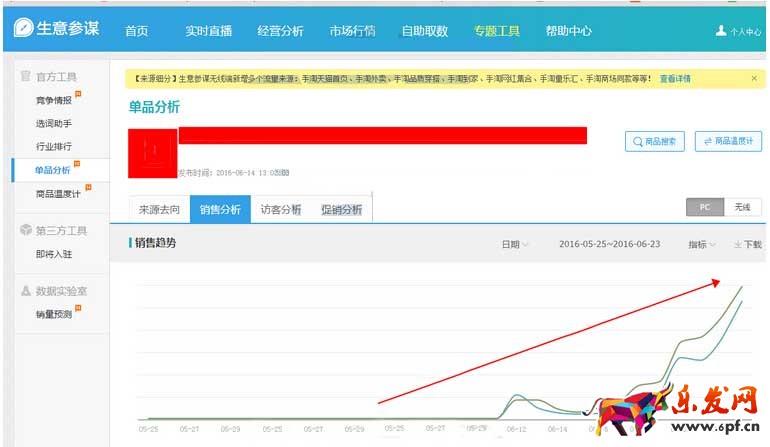 1)對于基礎流量較高的店鋪,直通車款式的篩選可以通過生意參謀-經營分析-商品效果-單品分析-銷售分析進行選款;