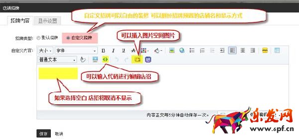5.如果不喜歡店招默認顯示 可以選擇“自定義招牌”自由裝修 此處可以插入“banner maker”