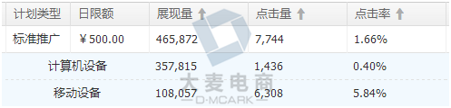 在流量維度上看,這個計劃的點擊率比較一般,那么解決措施是什么?大多數人都會說,換主圖,刪減低點擊的關鍵詞,調整關鍵詞排位。但是單從表面去分析調整就可以達到優(yōu)化的效果嗎?請看下面計算機設備和無線端設備的數據。發(fā)現其實無線端設備的點擊率其實不差,主要是因為PC端的點擊率拉低了整個計劃的點擊率。那么首先要確認一點,是否無線端和PC端的創(chuàng)意是否相同。如果是不同的刪掉點擊率較差的創(chuàng)意,如果是相同的情況下,那么接下來我們分析推廣詞,首先無線端的推廣詞數據和PC端的推廣詞數據對比,將兩方面點擊率較差的詞進行刪減,然后看PC端點擊率較差的詞的排名情況,將排名較差的進行價格調整,一般除了豆腐塊,點擊率最高的是右側欄的2-4位。