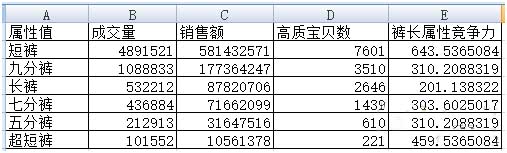 那這時候我們就會發現,競爭力最高的子類目應該是“牛仔褲”這個子類目。當然,這是今年7月份的數據,為了更有針對性,更科學,你可以用同樣的方法把去年7月份到今年7月份的12個月的數據全部計算一下,然后看一下整體趨勢是如何的。