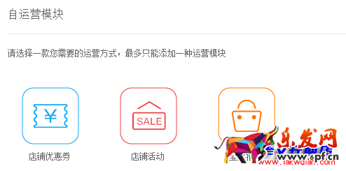 除了模板已有的模塊之外,您還可以自由設置“店鋪優惠券”、“店鋪活動”、“寶貝推薦”的其中一個模塊。