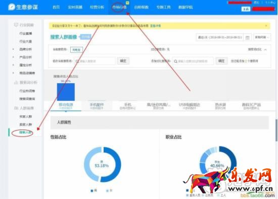 然后到生意參謀市場行情【專業(yè)版】,找到自己加入的兩個大詞的共同點,【人群年齡】【人群消費金額】【省份】等精準數(shù)據(jù),如下圖: