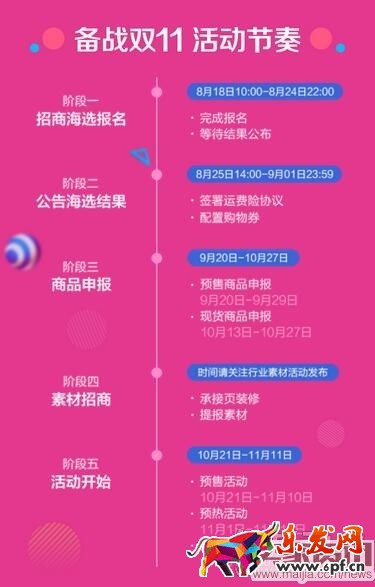 小編了解到,天貓2016年雙11即將進入商家預(yù)售商品申報階段,通過雙11海選結(jié)果的商家還需陸續(xù)進行現(xiàn)貨商品申報、素材提交等,最終于10月21日開始雙11預(yù)售。