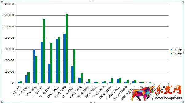 (1)產(chǎn)品定價集中在50-300元。而2015年,在200-300元的成交占比最高。