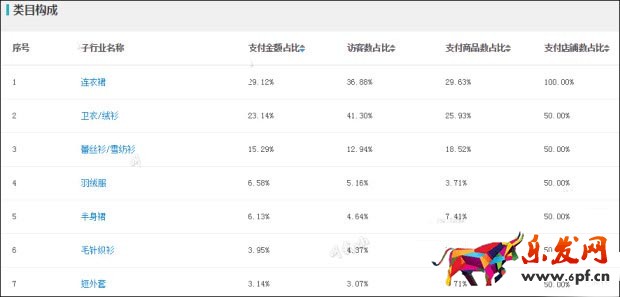 我們了解行業不同品類的交易占比,不是說一定要按這個比例來安排我們的產品占比,而是了解行業的大概情況,或者知道我們這個所賣或準備賣的品類有多大的市場。還有就是分析去年同期的數據,弄清楚后面一個月甚至兩三個月后市場上什么品類是最熱賣的,提前為我們找款和開發款式找清方向。