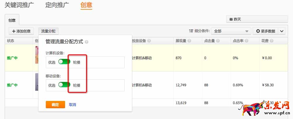我們可以上傳4個創意,通過創意輪播的形式,給每個創意平均的流量進行測試。