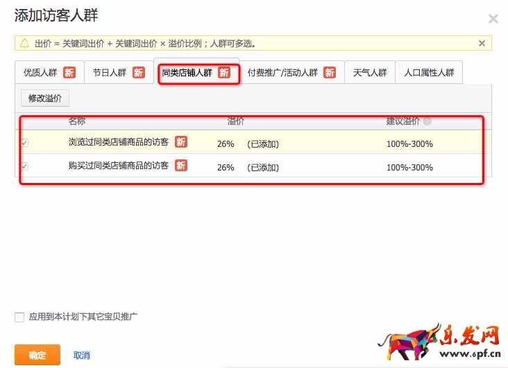 重點添加瀏覽未購買人群、相似店鋪店鋪人群、領(lǐng)了雙11紅包人群等標(biāo)簽,加大對這部分人群的溢價,營造大促氛圍。