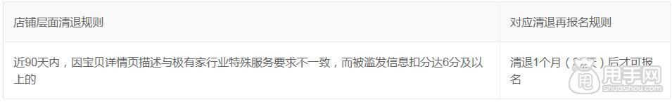 針對加入服務(wù)但是頁面描述不提供服務(wù)的情況一經(jīng)發(fā)現(xiàn)即會按照濫發(fā)信息規(guī)則進行處理,當商品信息達到多數(shù)的情況,即會被極有家的進行清退。