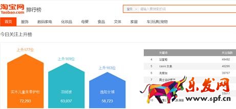 淘寶排行榜由今日關注上升榜和一周關注熱門榜。